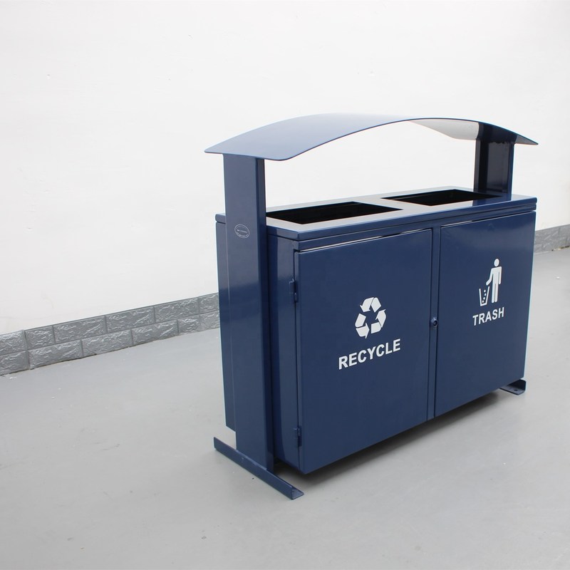 Powder coated steel 120L rectangular outdoor metal recycling garbage waste bin outdoor furniture street garbage bins